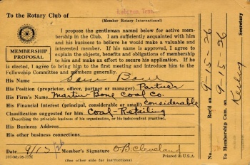 Sam S. Bone's application for membership, September 15, 1926. |