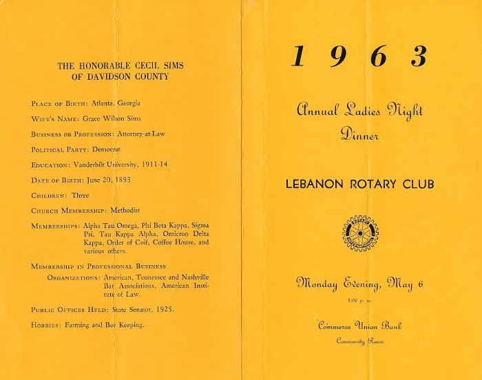 The Rotary Club of Lebanon sponsors the David Lipscomb College "A Capella Singers" at Castle Height's McFadden Auditorium to support the Club's Student Loan Fund (1961-1962). |