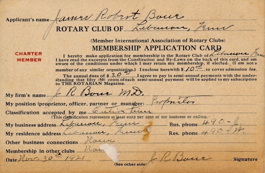 3. 1921 - Membership Application Card for Charter Member James Robert Bone, MD