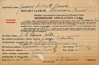 Membership application of Dr. James Robert Bone, November 30, 1921. |