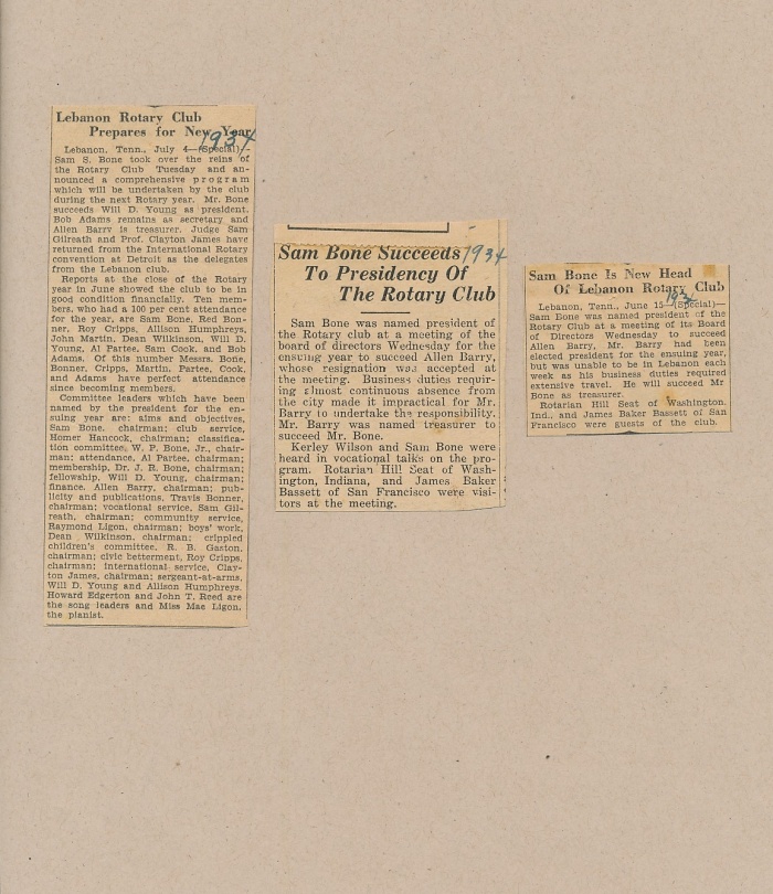 Sam Bone elected to Club president for 1934-1935. |