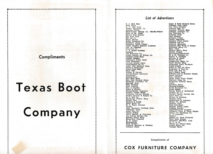 List of Advertisers in the "A Capella Singers" Program (1961-1962) |