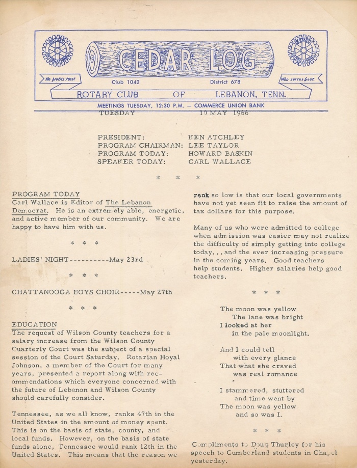 May 10, 1966 Cedar Log (1965-1966) - page 2 (and planning agenda for Chattanooga Boys Choir) |